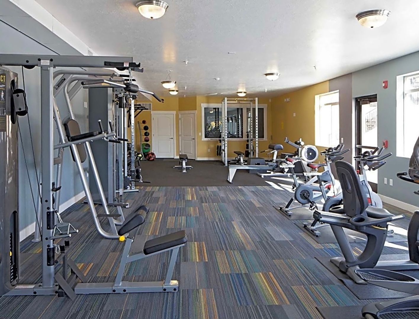 We have a very well-equipped, 1300 SQ FT 24-hr fitness center, a large fenced dog park where your pup can play with their community pup friends, 2 basketball standards in our enclosed sports court, 3 ELEVATORS, and indoor controlled-access parking garages.