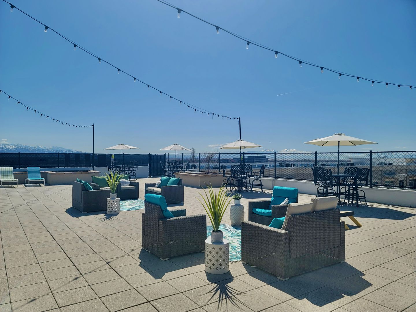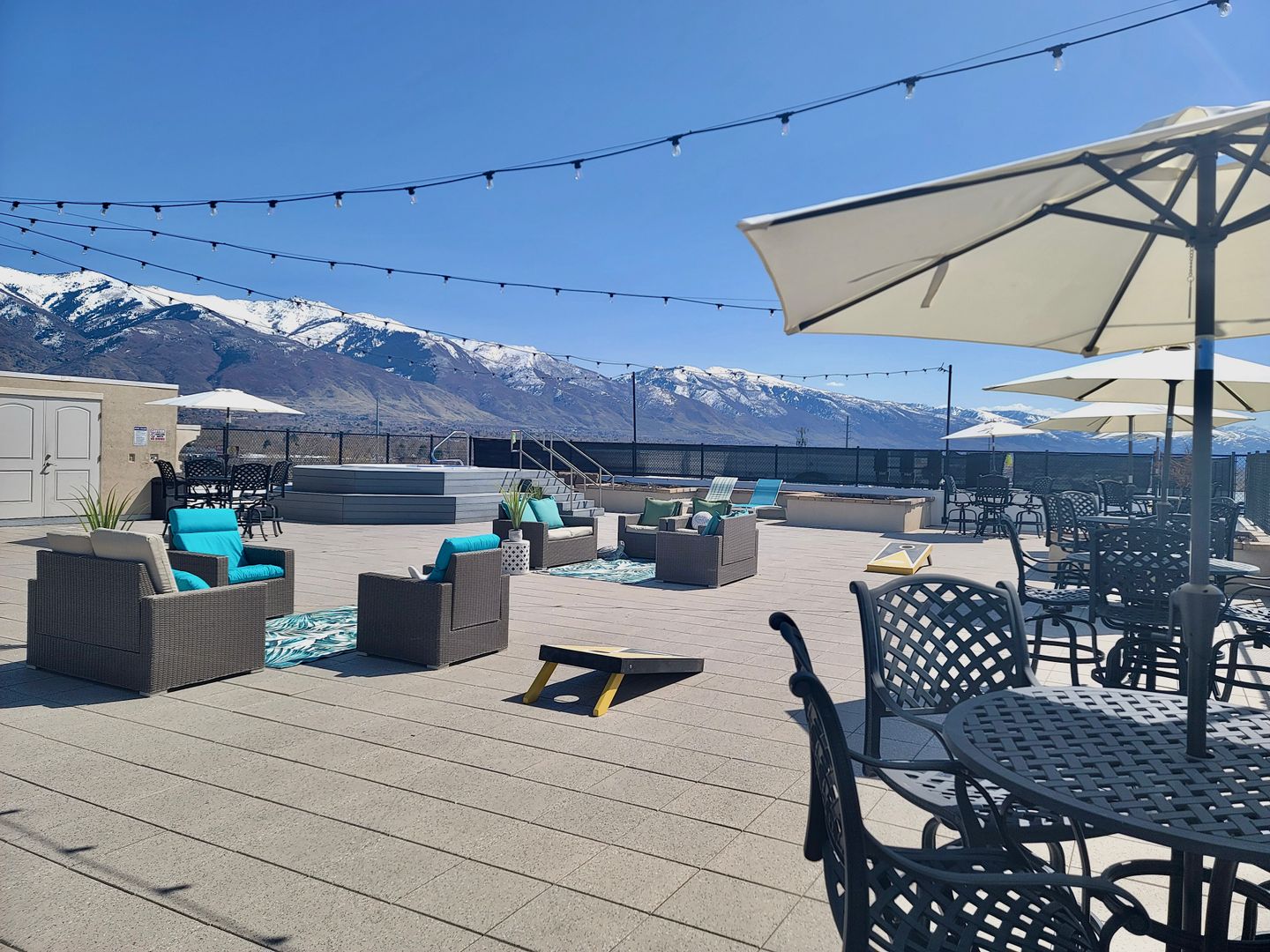 Our rooftop deck offers stunning views of the mountains, the Great Salt Lake, and Antelope Island. Several comfortable areas to gather, a built-in BBQ grill, and a hot tub will complete your city-style rooftop experience.