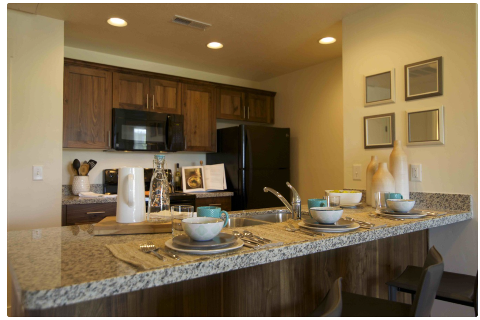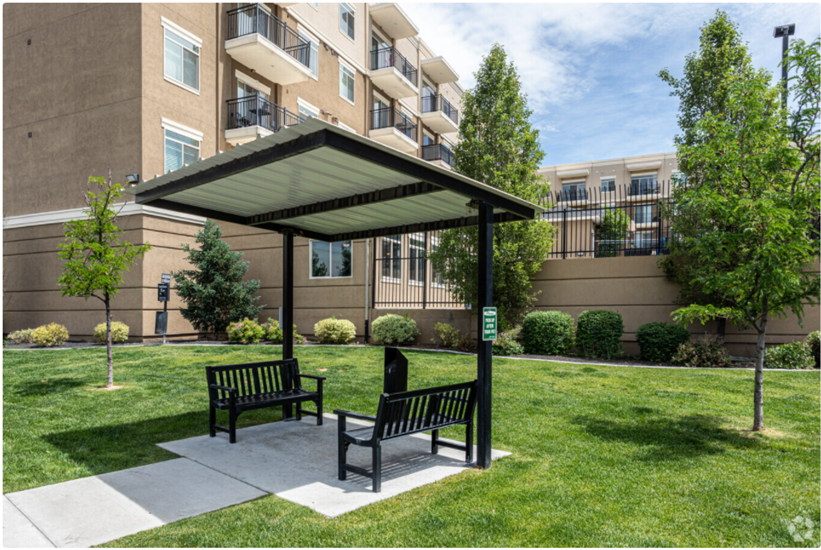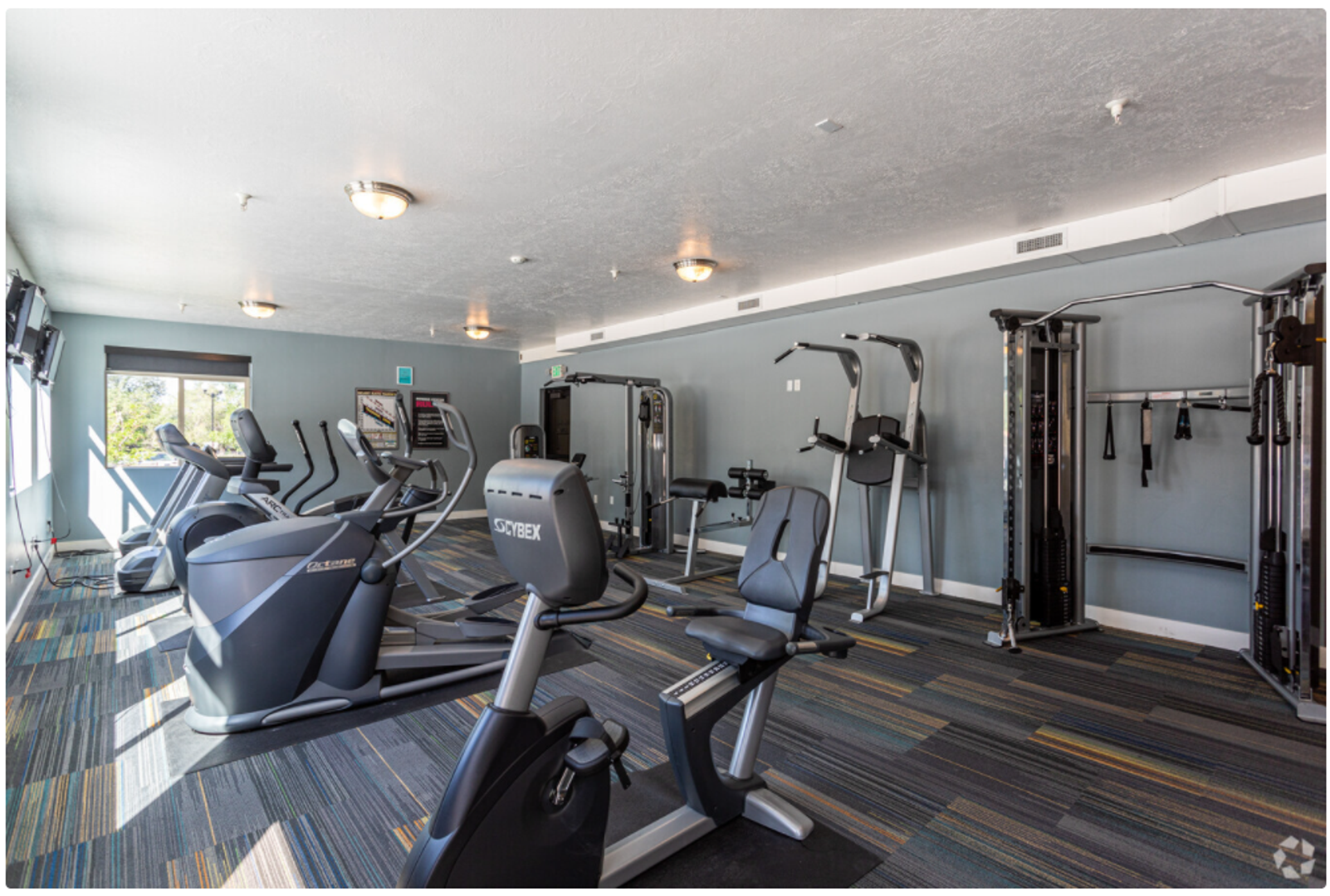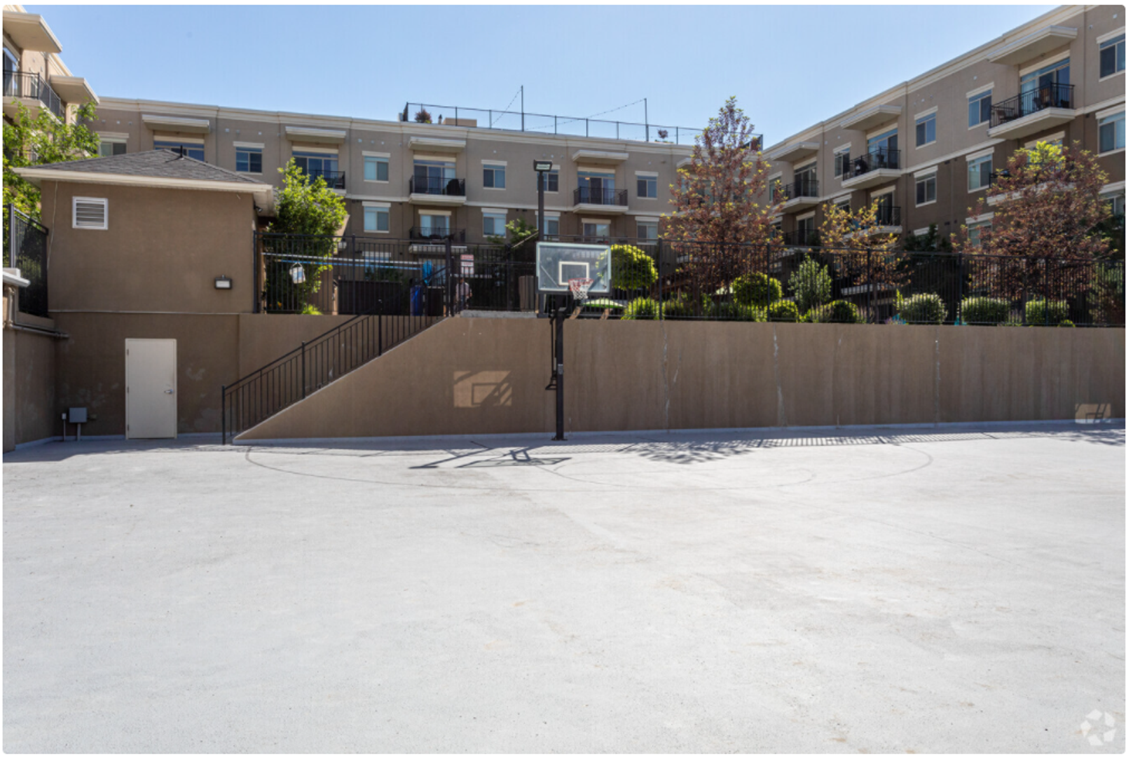 We have a well-equipped, 1300 SQ FT 24-hr fitness center, a large fenced dog park where your pup can play with their community pup friends, 2 basketball standards in our enclosed sports court, 3 ELEVATORS, and indoor controlled-access parking garages.