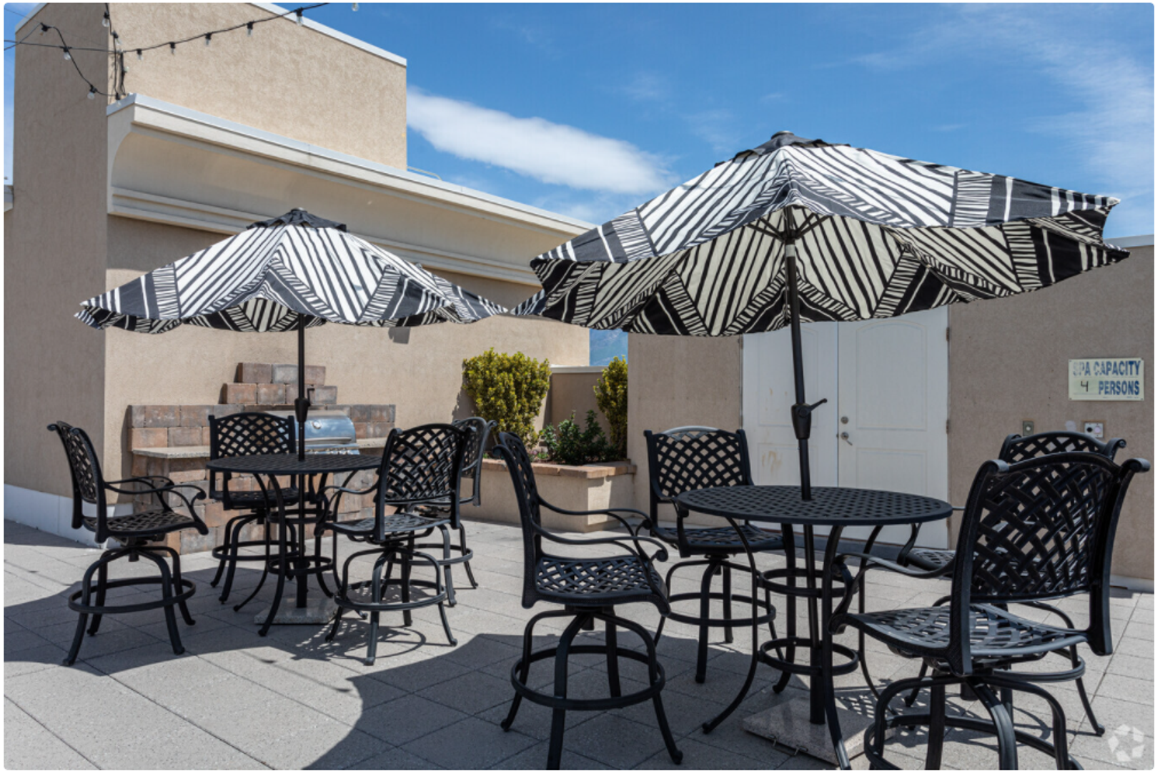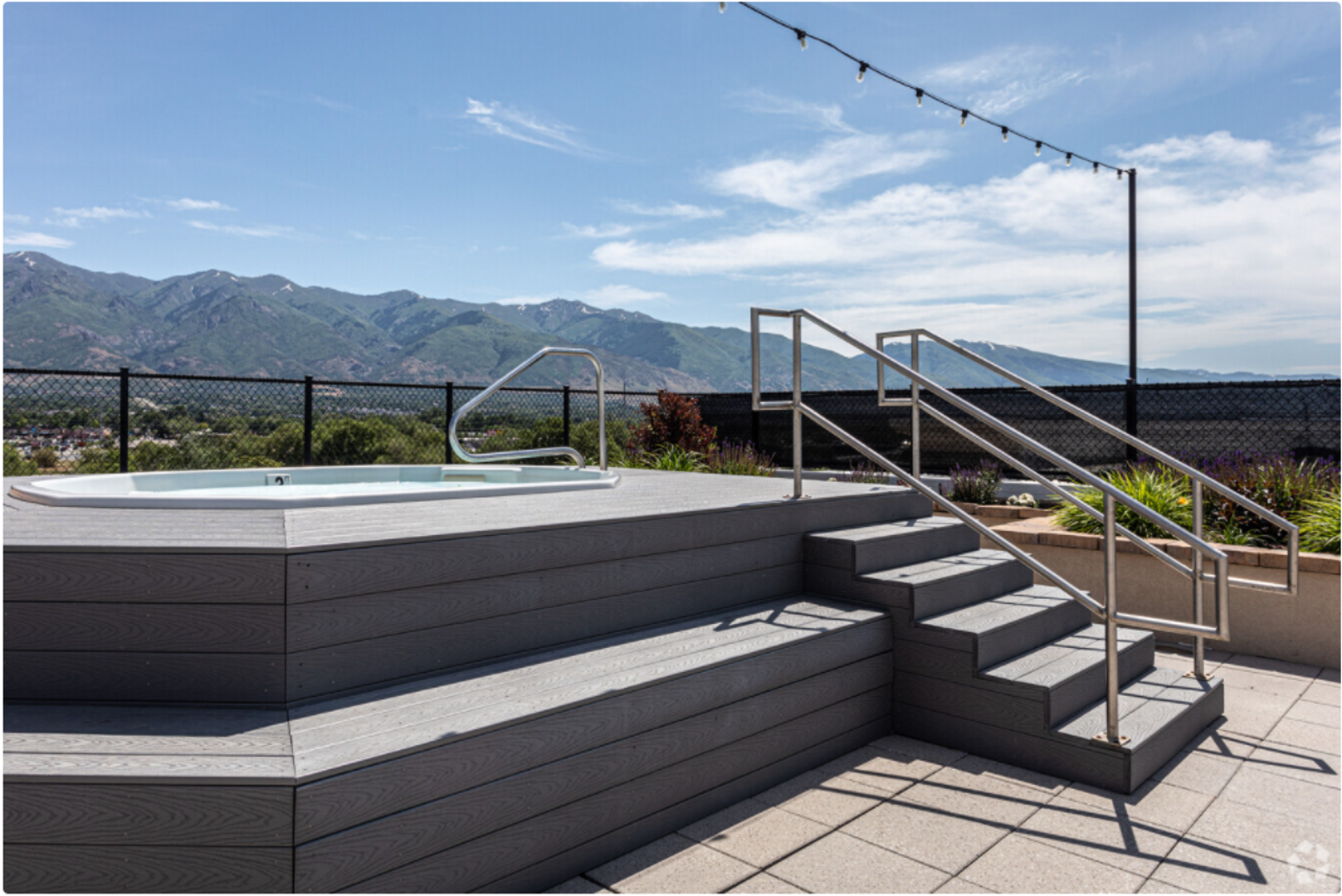 Our rooftop deck offers stunning views of the mountains, the Great Salt Lake, and Antelope Island. Several comfortable areas to gather, a built-in BBQ grill, and a hot tub will complete your city-style rooftop experience.